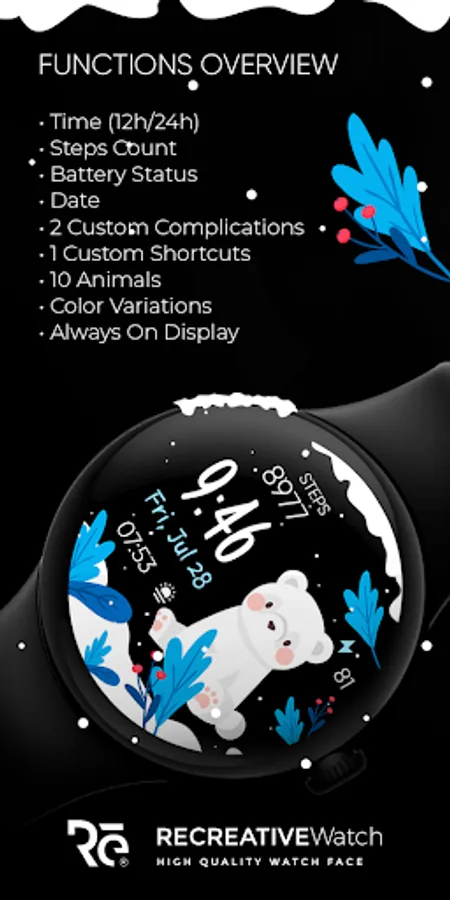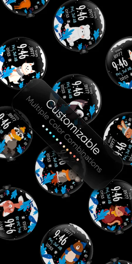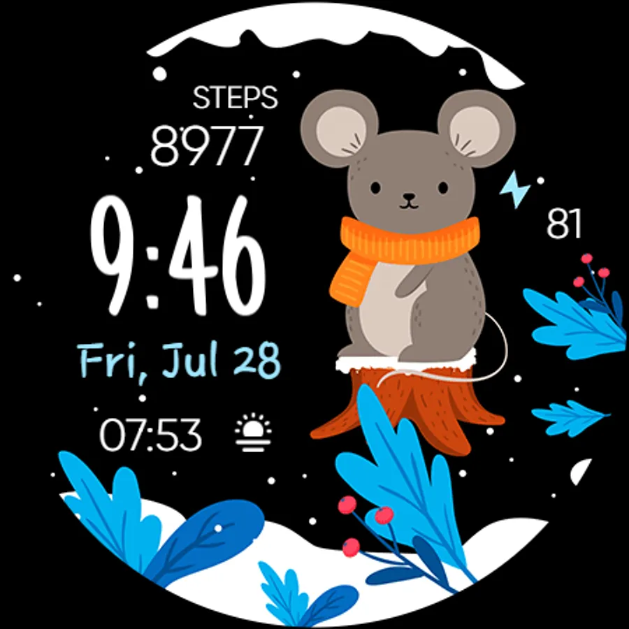 Introducing the Wear OS Watch Face - a delightful experience for animal lovers everywhere. This customizable watch face allows you to showcase your favorite animals right on your wrist. With a wide selection of adorable animals including the Fox, Deer, Raccoon, Cat, Dog, Bear, Bunny, Squirrel and Mouse, you can personalize your watch face to reflect your unique style.