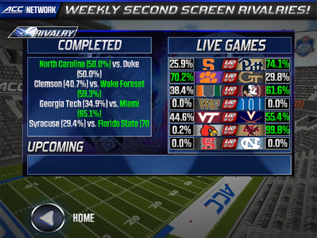 Represent your favorite ACC team as it takes on conference rivals. Rack up wins for your team against their rival, the school with the most wins claims bragging rights.