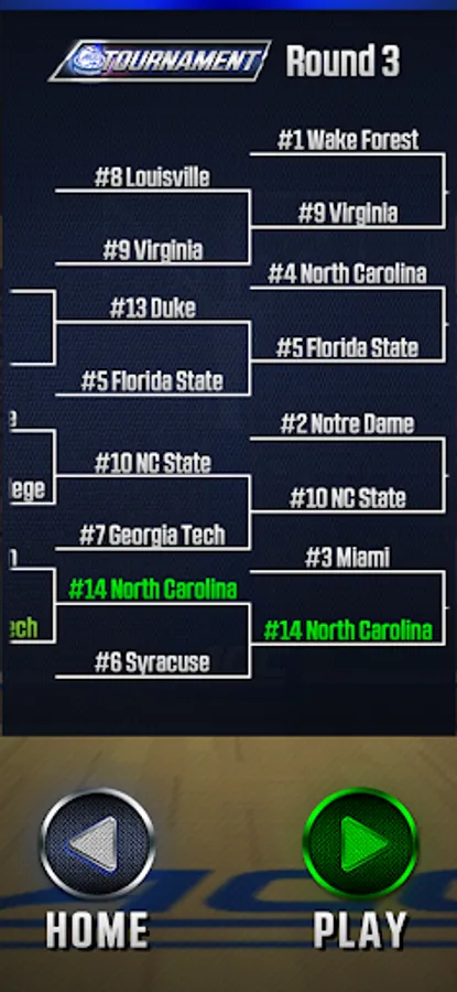 • Play one-on-one or survive and advance the ACC tournament bracket