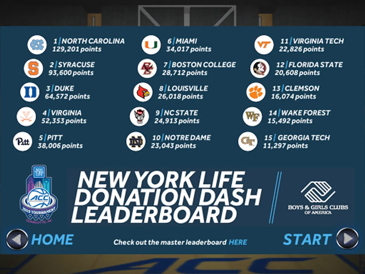 For each point you score, New York Life will contribute to your school’s local Boys and Girls Club. Competition across the conference will heat up as the fans battle it out over which club will benefit the most!
