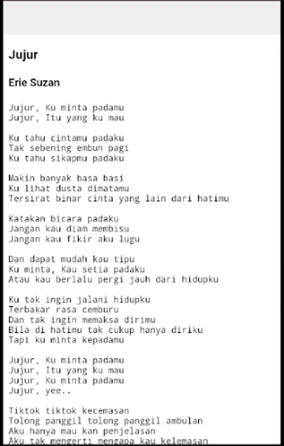 A collection of song lyrics from dangdut singer Eri Susan Offline.