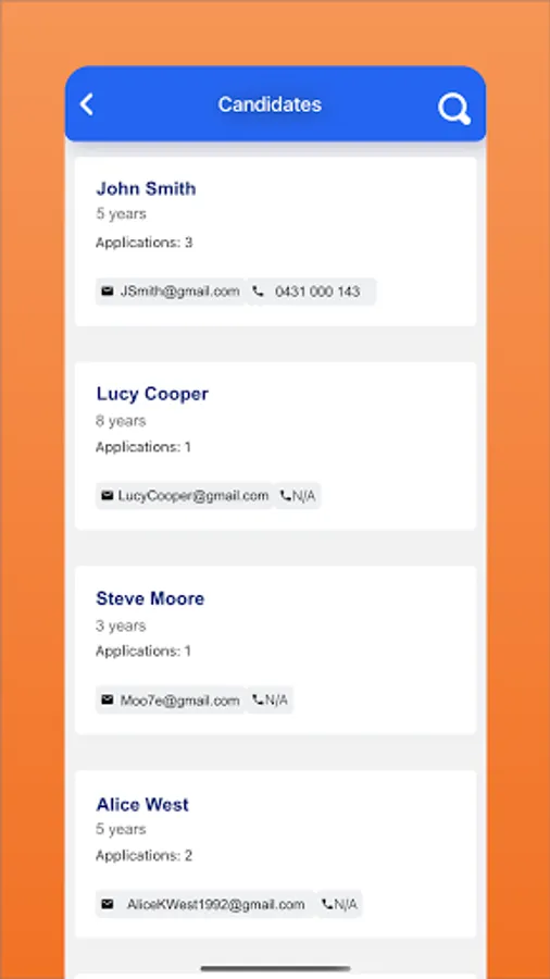 Within MRP Go, users can search for candidates in their database, review job listings, and review applications. Make digital notes on candidates' profiles for other users to review and add to, and directly contact candidates via SMS and email.