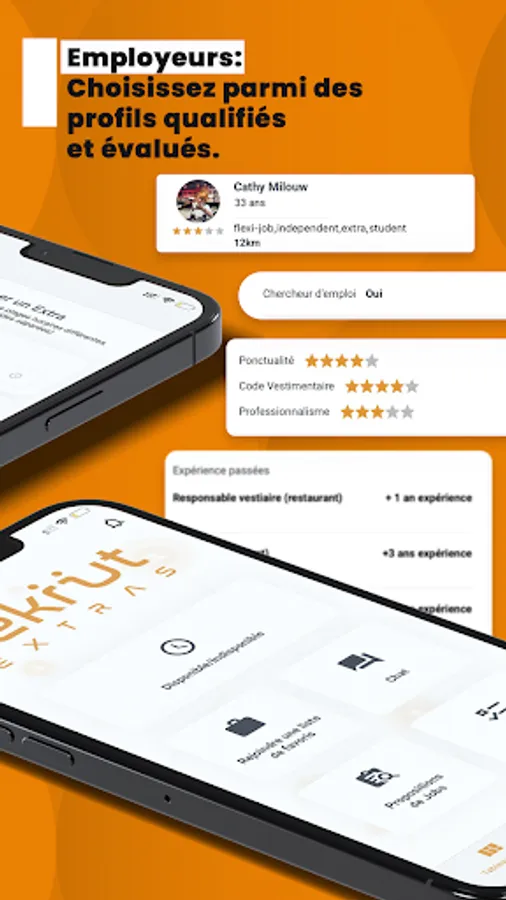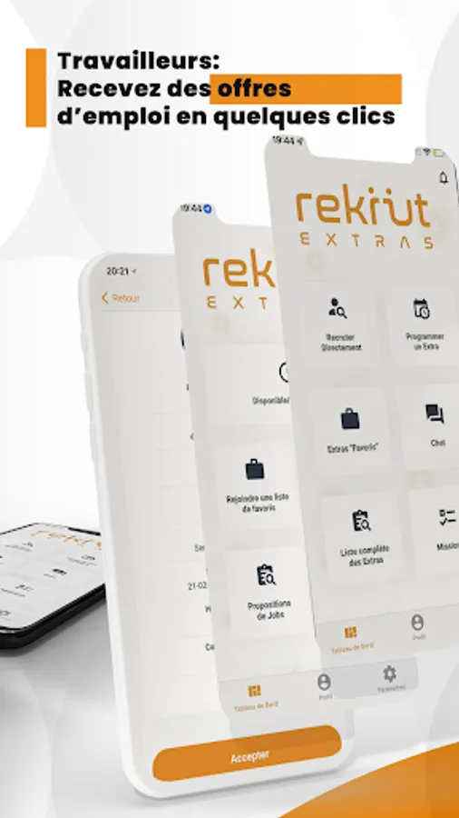 L’Application permet de géo localiser les Travailleurs disponibles de sorte qu’un Extra peut être sur place en moins de 20 minutes s’il se trouve à proximité immédiate de l’établissement. Les Employeurs ont la possibilité de rencontrer les Travailleurs de leur quartier et constituer une liste de « favoris » qui correspondent à leurs critères. Ils peuvent recruter un Travailleur en temps réel ou planifier des offres d’emploi à l’avance. Toutes les compétences de l’Horeca sont représentées, y compris des étudiants, flexi-jobbers et des professionnels de tous niveaux. Les prestations sont évaluées sur 3 critères : ponctualité, respect du code vestimentaire et professionnalisme. « Rekrut-Extras » n’intervient pas dans la négociation des rémunérations, ni dans les formalités de paiement des salaires. Les employeurs abonnés peuvent également accéder gratuitement à la base de données pour proposer des CDD ou CDI .
