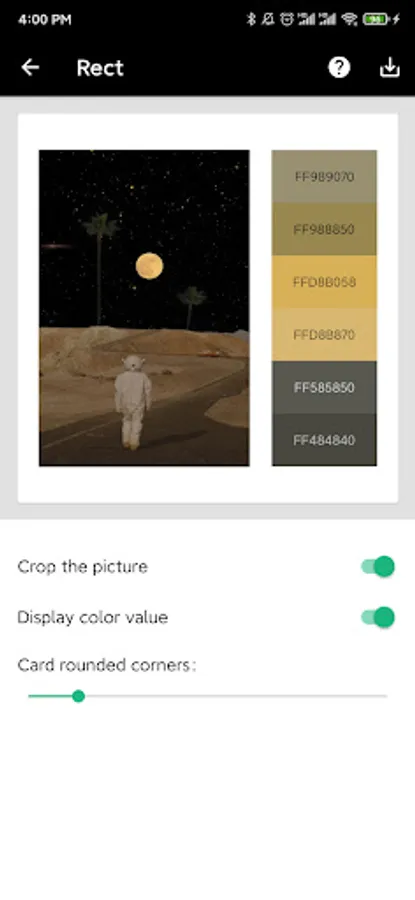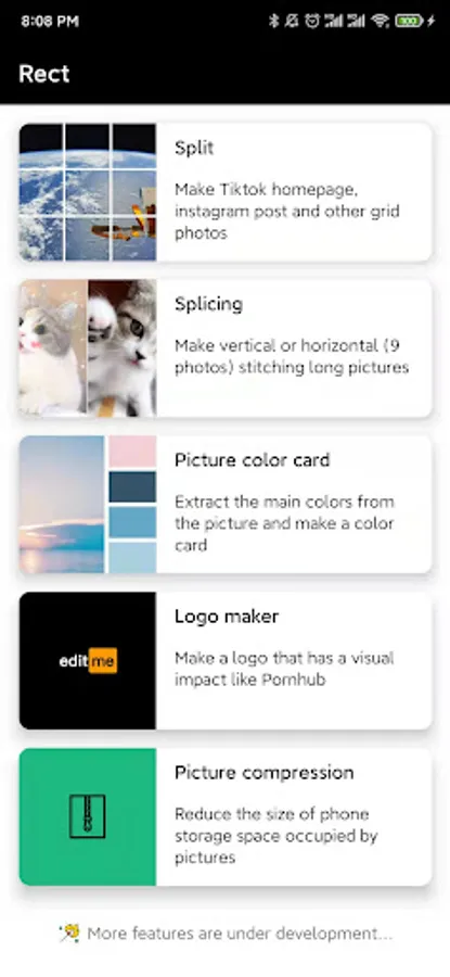 Rect uses a powerful algorithm to achieve, the produced pictures in the case of ensuring high definition, reduce the file size as much as possible, to help you save the storage space of your phone.