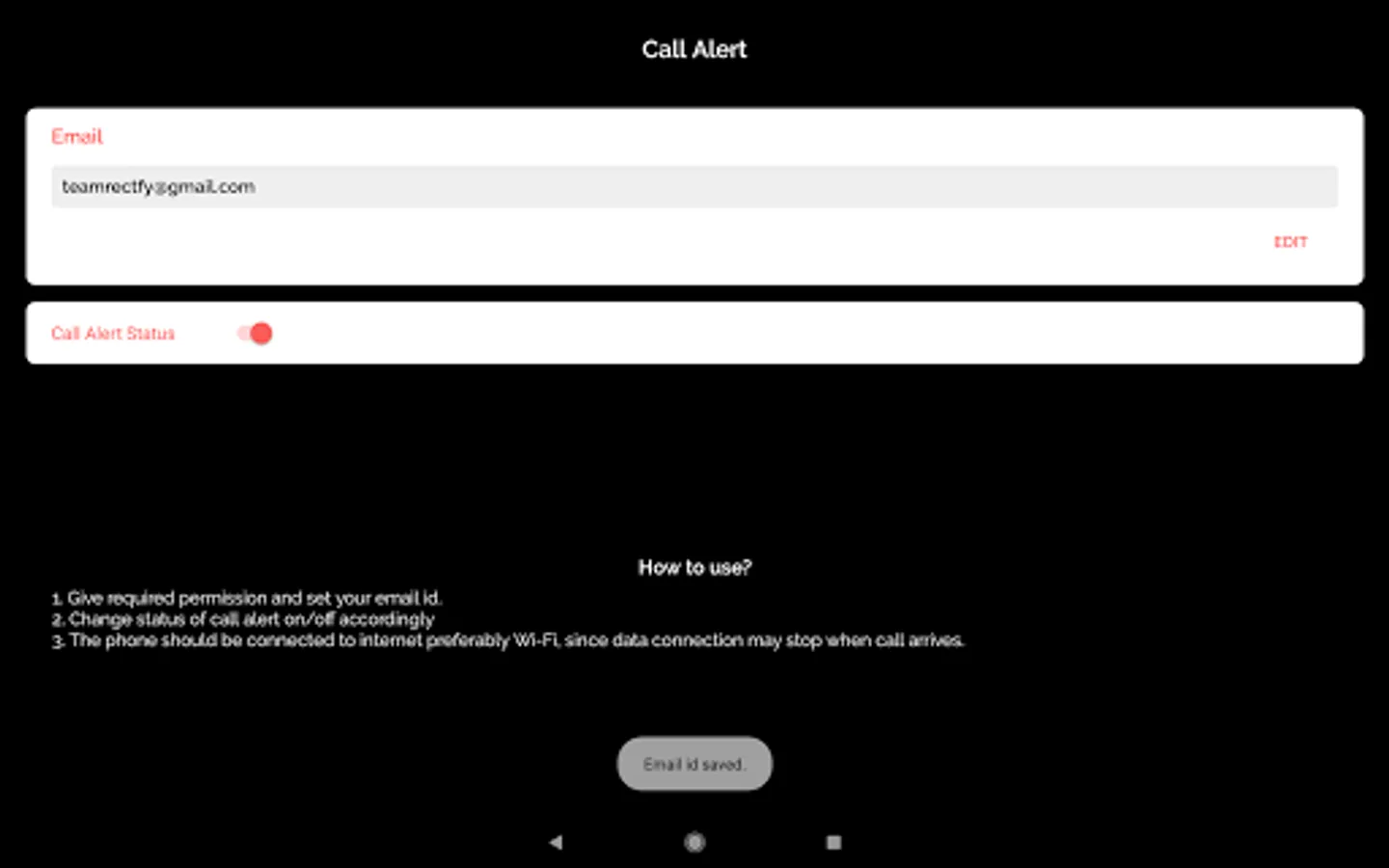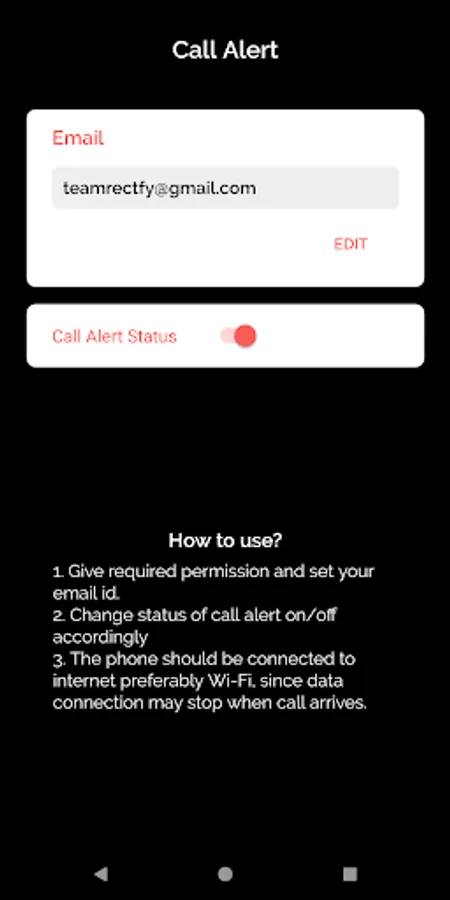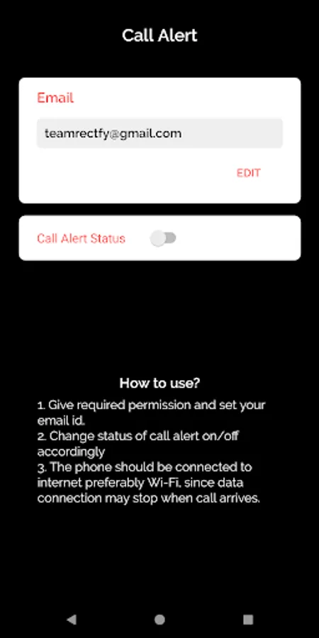Call Alert - Mail alert for incoming calls and missed calls