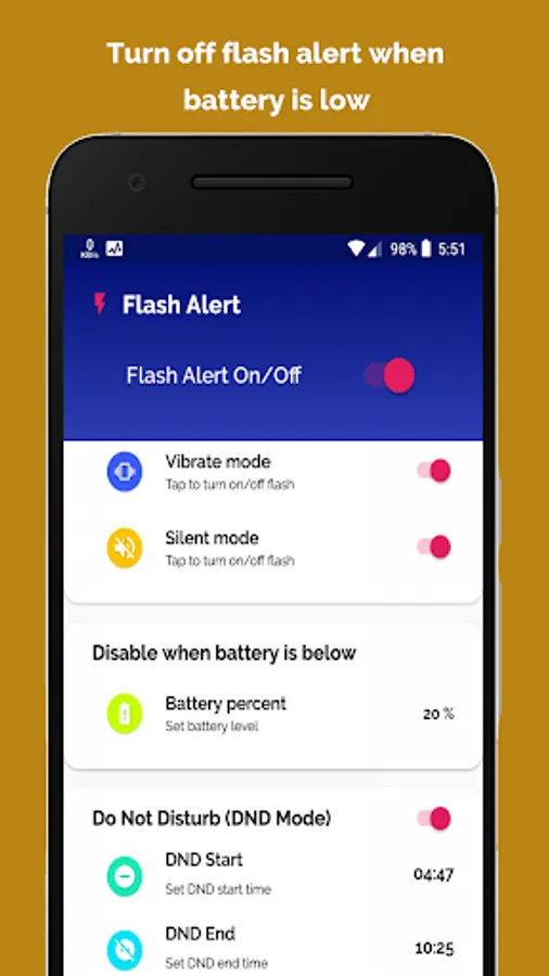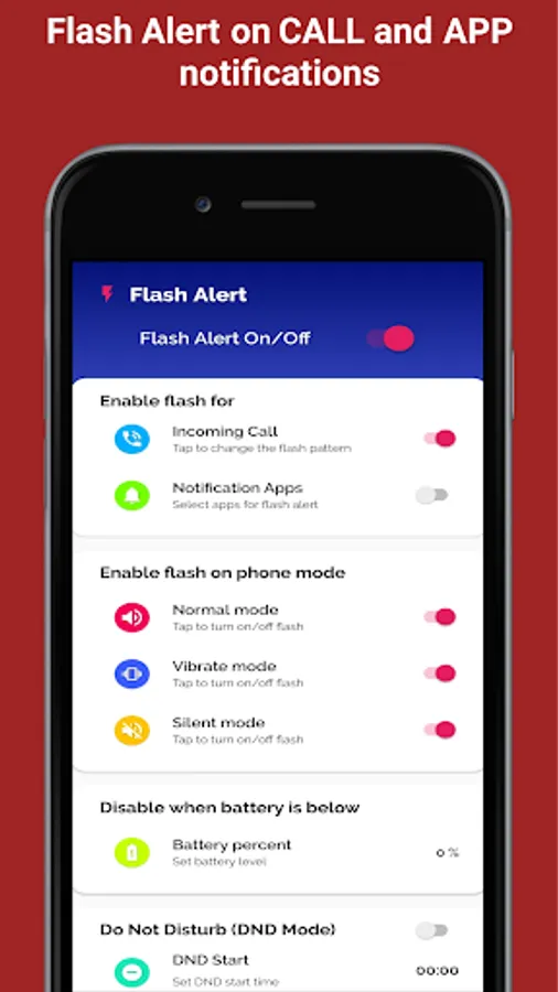 ♥ Manage flashlight alerts, flash ringtone, call flash alert call flash alert by Time