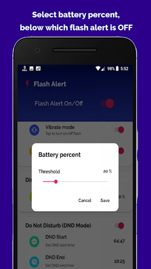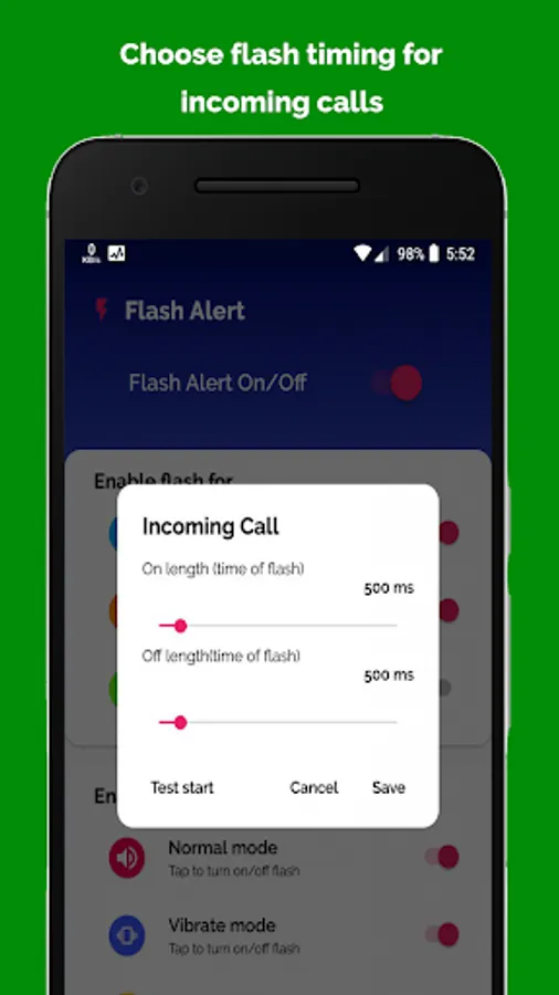 Flashlight alert app - call flash light app can work effectively in different phone modes ( Ring, Vibrate, Silent )