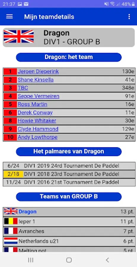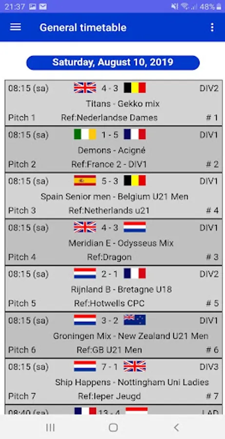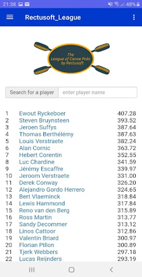 Canoepolo, Charleroi (sneffe) chose to display all results and timetables of your favorite teams during the tournament with the Rectusoft Tournament Organizer app.