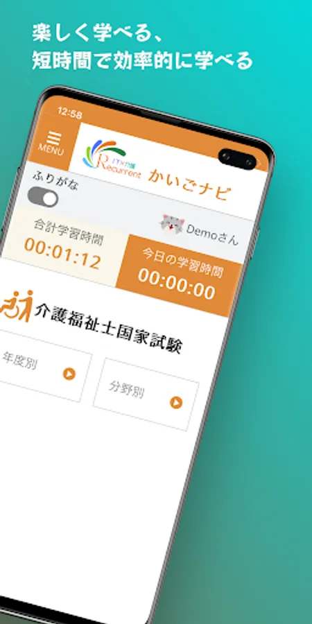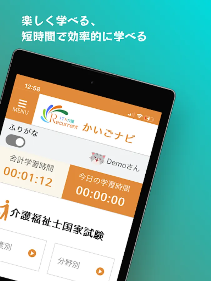 As the super-aging society progresses, the need for nursing care will increase further in the future. The nursing care industry is suffering from a chronic shortage of human resources, and the number of nursing care workers continues to increase. In addition, certified care workers are highly valued and sought after by the nursing care industry. We developed this app to support those who aim to acquire such care worker qualifications.