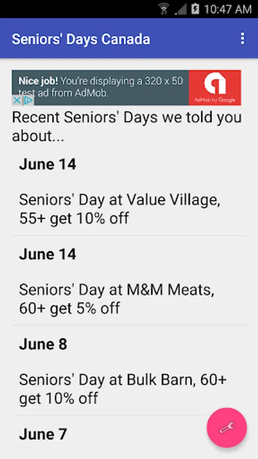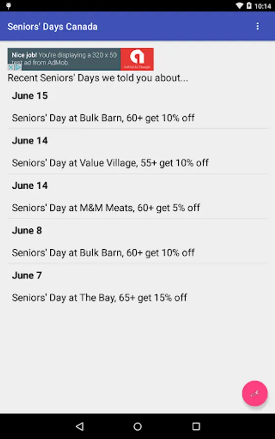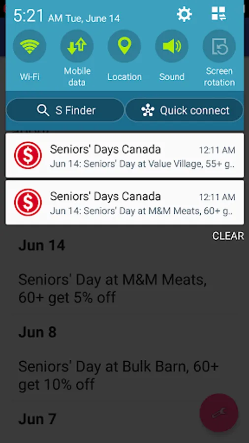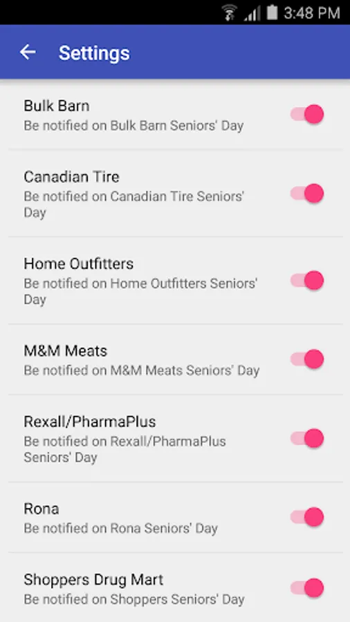Why not be notified when its a Seniors' Day at several major stores and save some money.