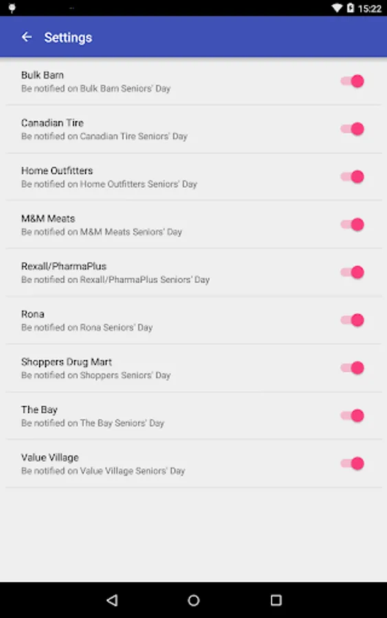 If you know of another major store (in Canada) that has a regularly scheduled Seniors' Day, please let us know.