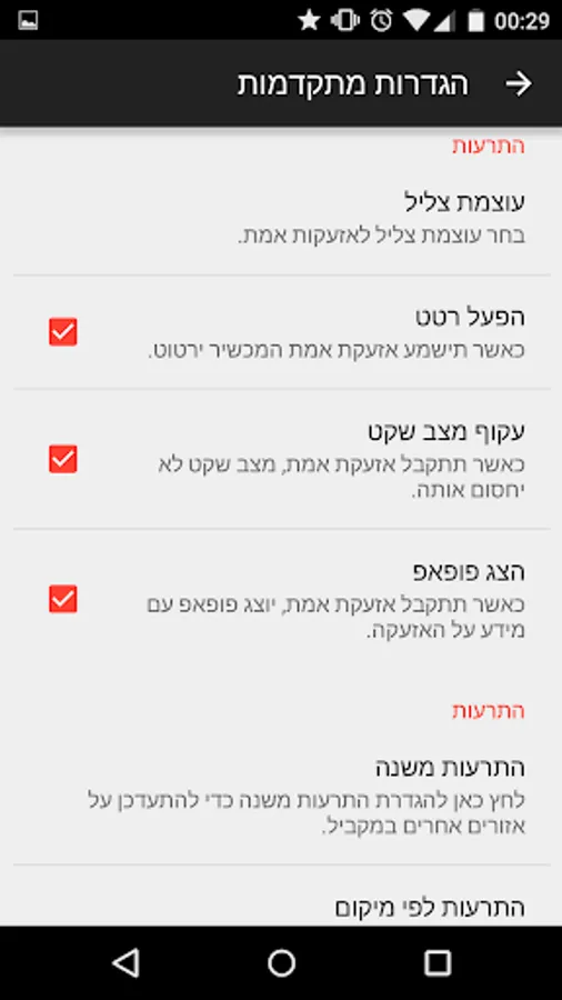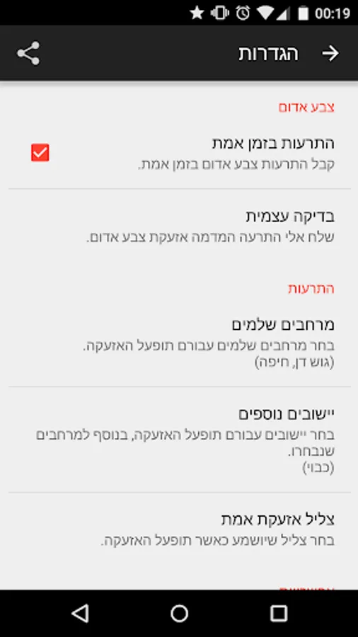 ★ Connectivity - check, at any time, whether your device is able to receive rocket alerts via the "self-test" option