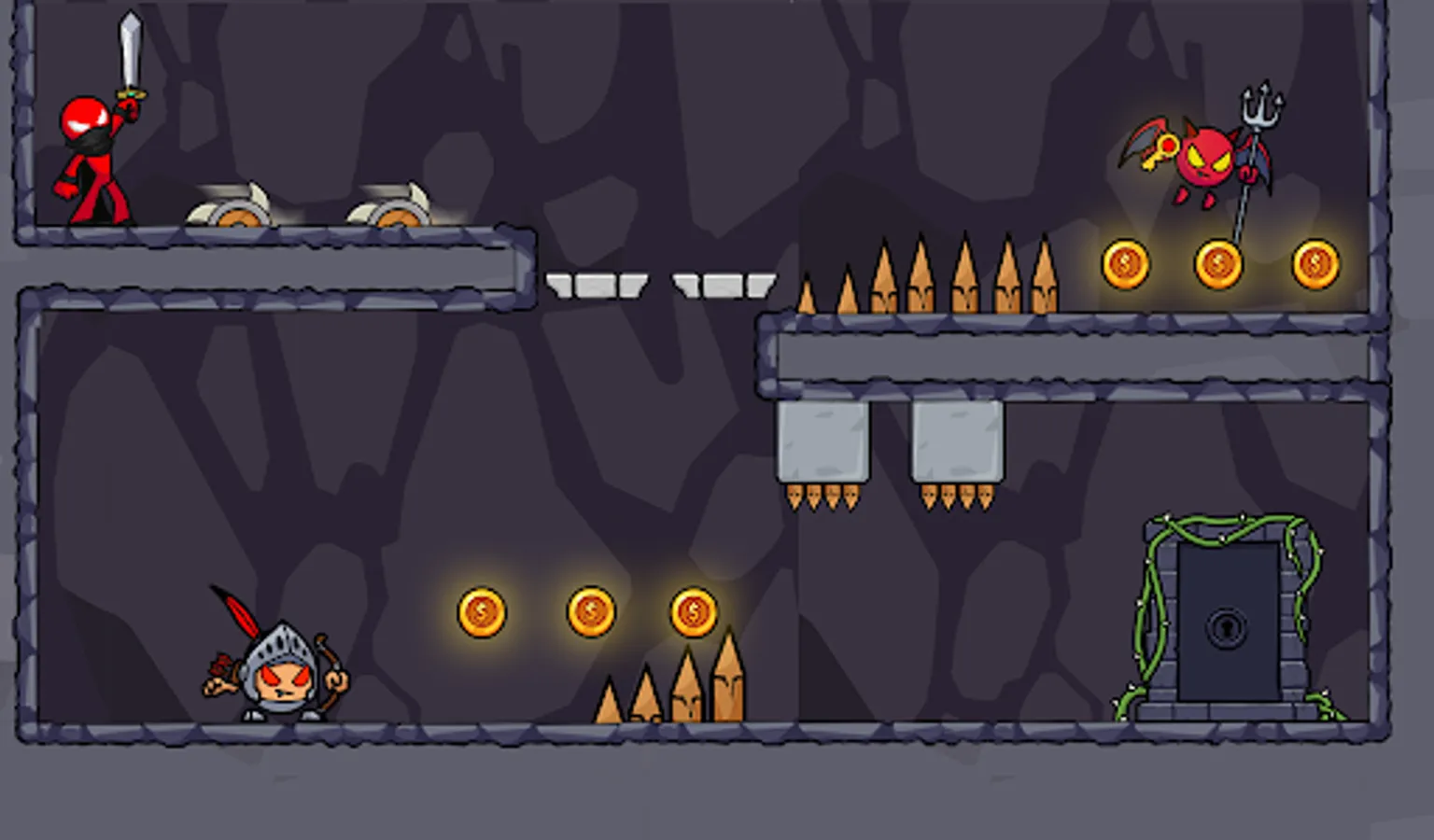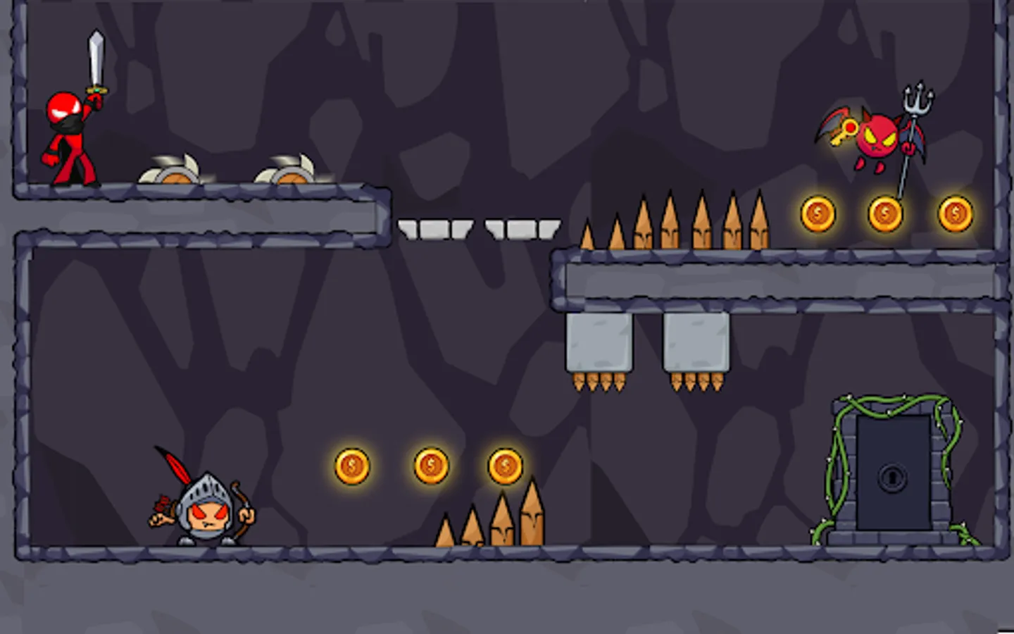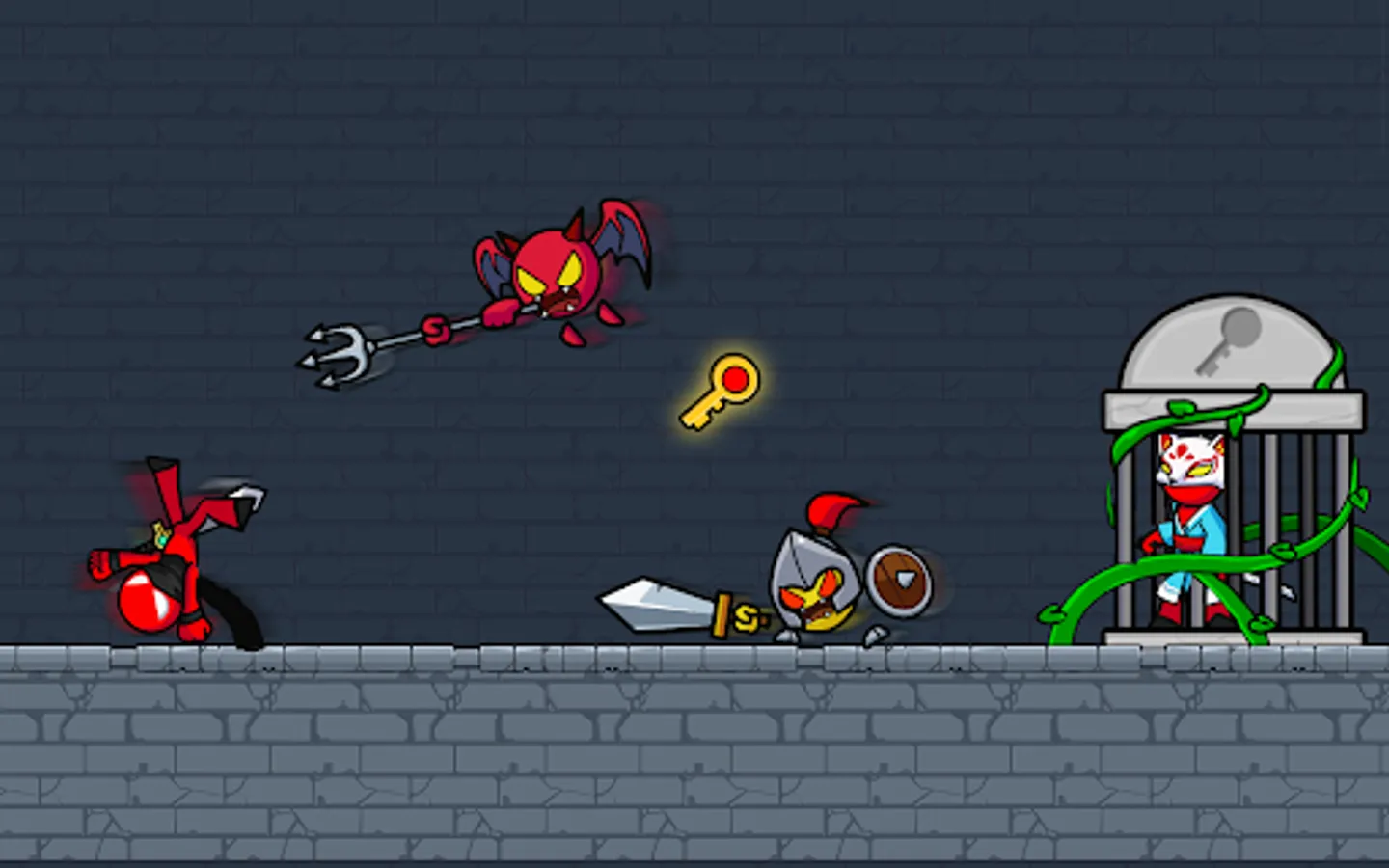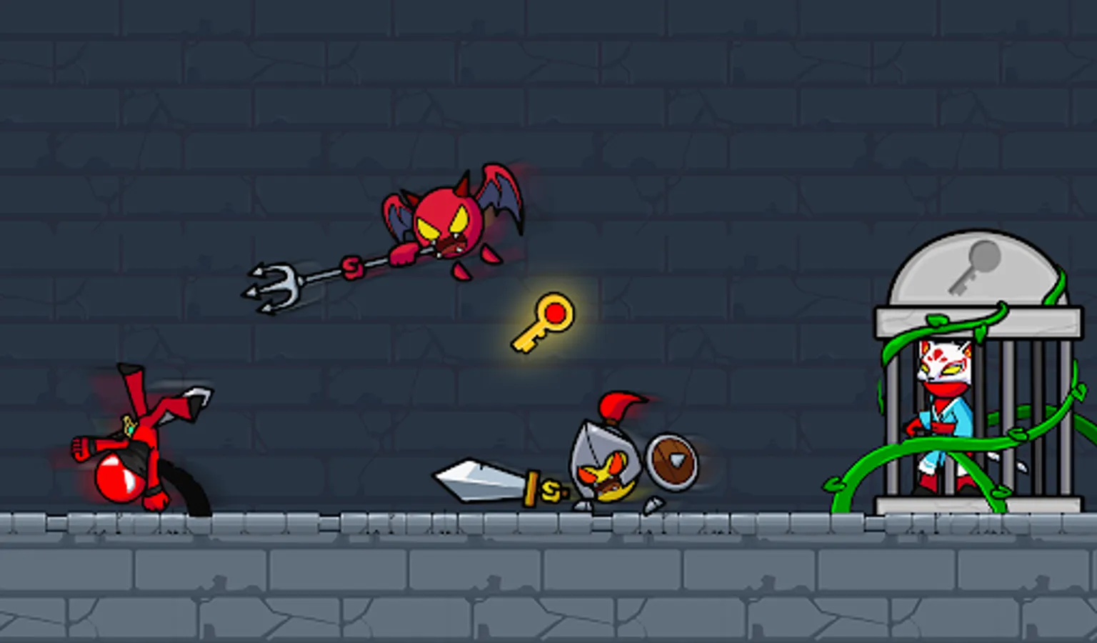 π₯ Easy but addictive teamwork gameplay: Stickman adventure, stick figure, red game.