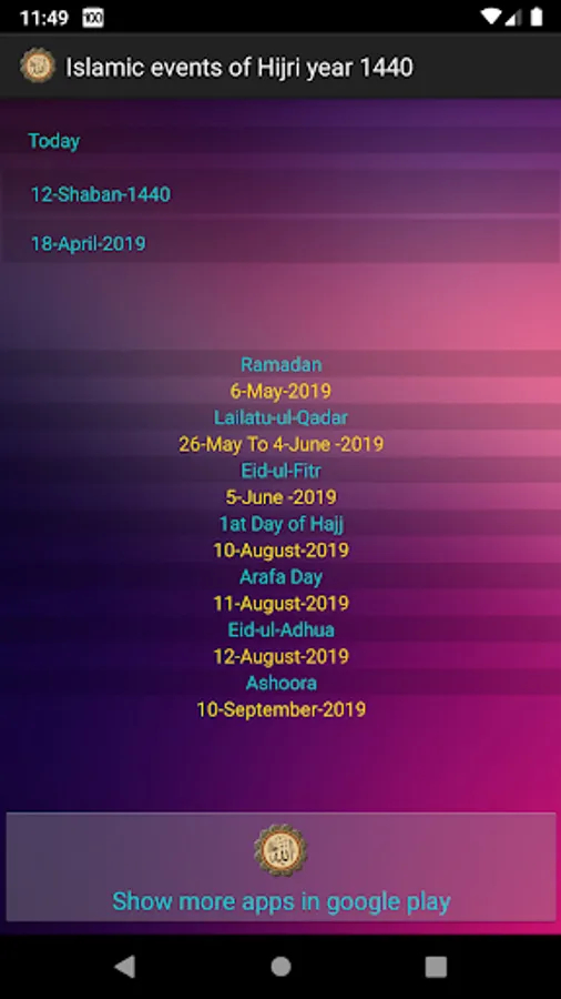 1. Application provides some important "Islamic Events" according to sunnah practice.