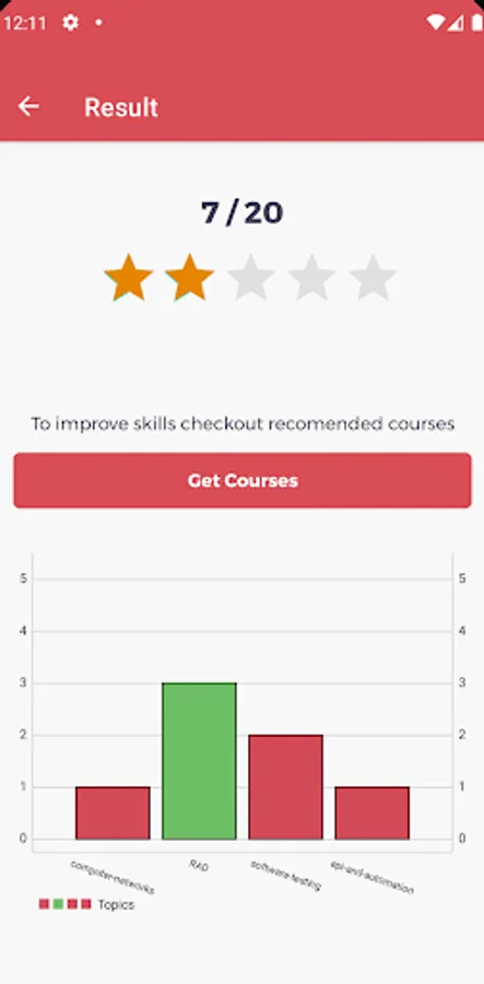 The second segment of the application covers a fully homegrown assessment module, where the competency framework designed for engineering teams curated in-house powers the test with backend logic based on the framework. It allows people approved by org; to select their job level and team within engineering prior to an assessment, and exhibits precise questions as per the competency requirement for the individual; which is team specific and has 5 questions per competency covered. The validated competency framework setup in the backend has level wise functional expectations set at basic, intermediate and expert; thus the questions generated and scoring logic has been set based on the same. The level of expertise needed for each level defines the number of questions which need to be answered correctly. Once the test has been taken the competencies with low scores get flagged and a get course option pops up for the assessee. On clicking this ‘get course’ option the assessee gets a list of learning courses realtime from learning sites across the internet offering free and relevant learning material for the specific competencies that they need to develop or build their skills around. The list of courses received by the individual can also be shared to their email id for better hold on tracking and completion.