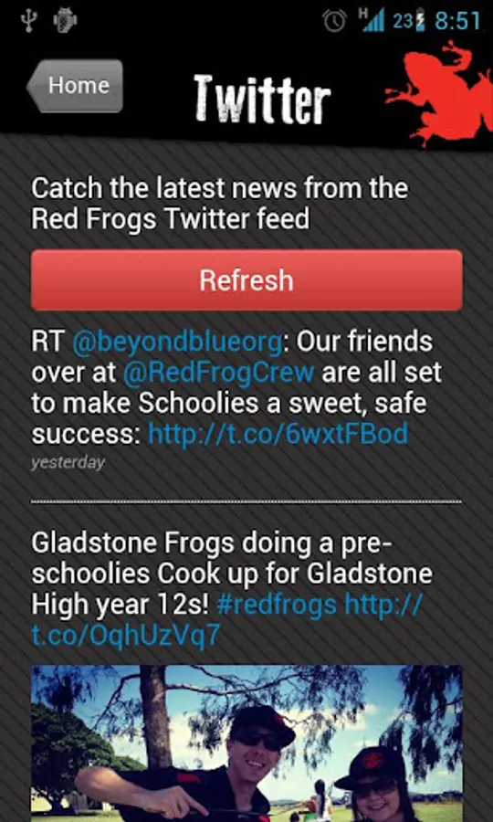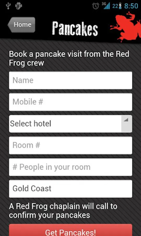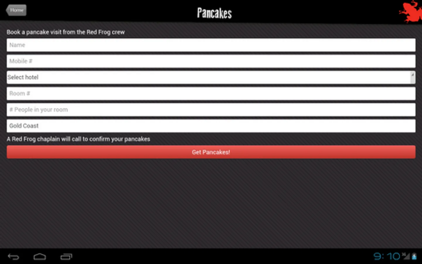 Connect with the Red Frog Crew to request a walk home, pancakes or a room visit. Find out what events are happening near you. Have access to special deals for Schoolies and get tips to make your Schoolies experience awesome!