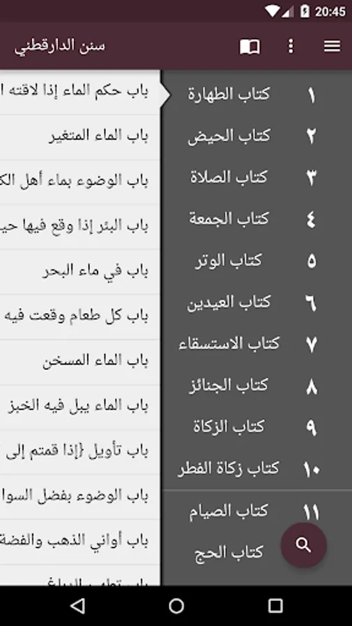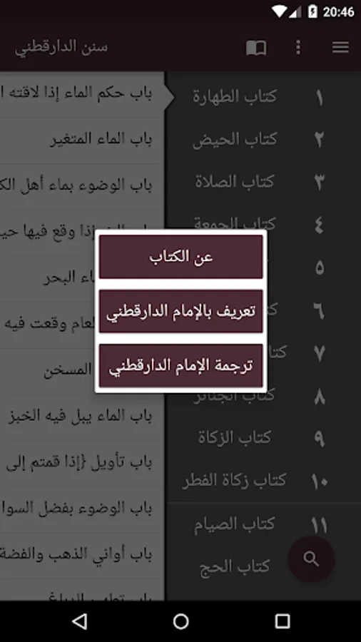 - جميع أحاديث كتاب سنن الدارقطني، مقسمة إلى كتب وأبواب