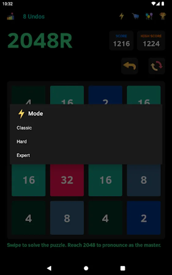 Join the numbers and get to the 2048 tile! Supports Classic (4x4), Hard (5x5), and Expert (6x6) board sizes. Be ready for the challenges!