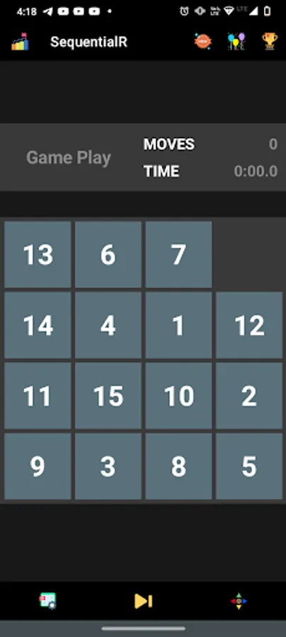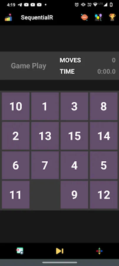 SequentialR is a simple sliding puzzle game. Your goal is to arrange tiles in ascending order (left-to-right, top-to-bottom) by moving puzzle pieces. It's a good way to train your brain, memory, and attention a little.