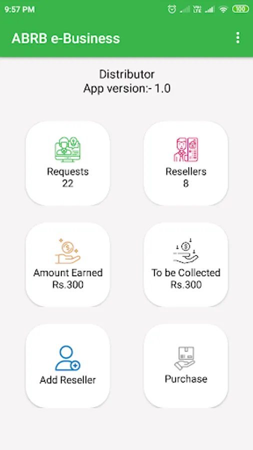 ABRB Distributor app is an end to end official ABRB app for the Distributors. Using this App, you can on-board new resellers as well as end users. Also, just one click away on add/ view resellers, keep tab on payments recieved, to be collected along with purchase reports.