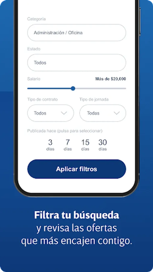 Filter the job offers in the application according to location and position or professional area, and you will be able to see those that best suit your job profile.