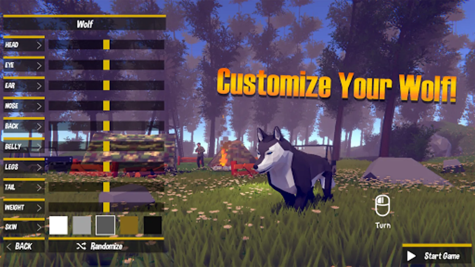 You can make friends with friendly wolves and go hunting together. You can make strategic moves by giving commands to friendly wolves during the battle.