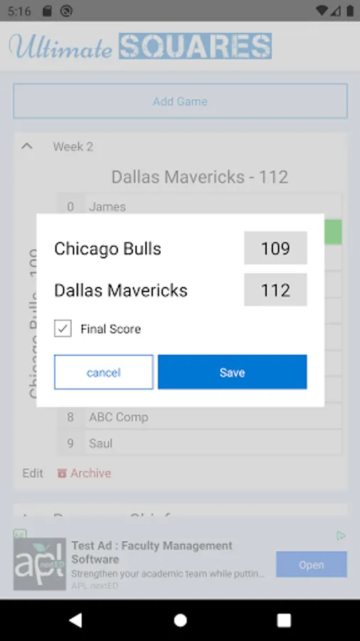 3. Tap team name to update scores