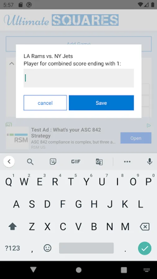 1. Add a new game with the two teams playing