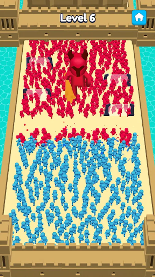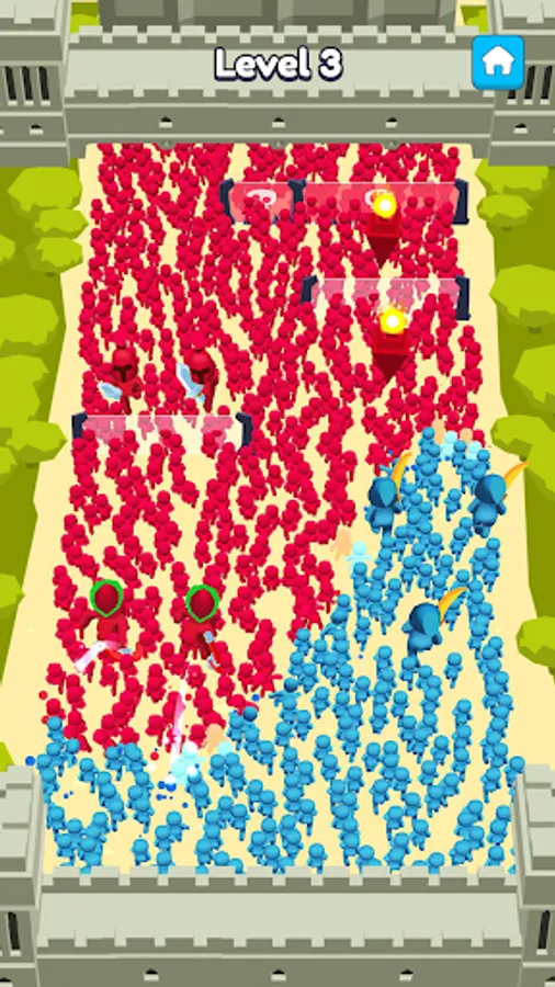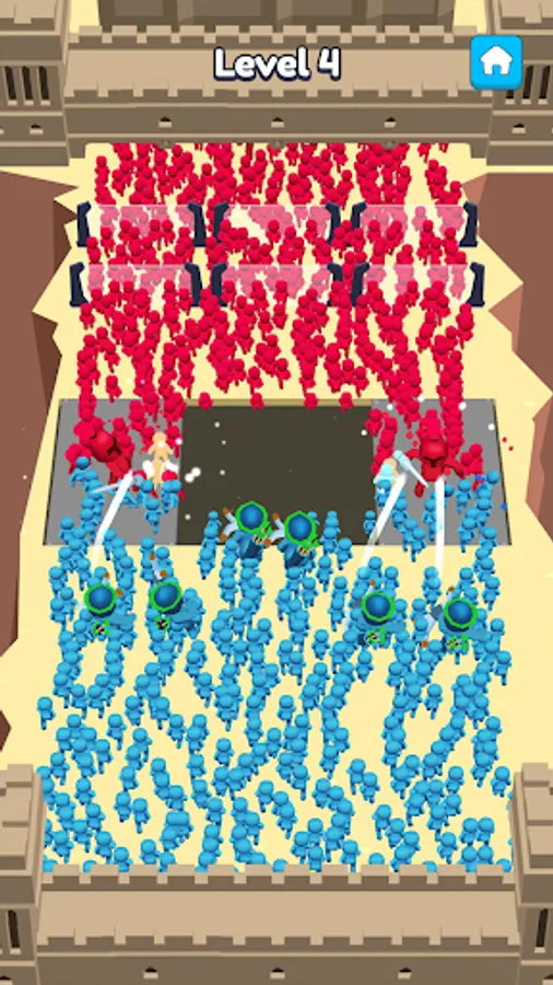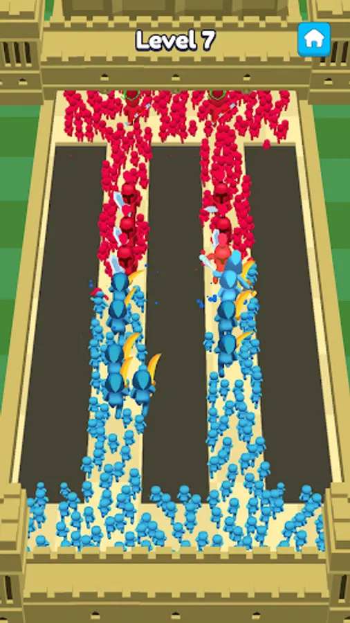 Throw the weapons to your army to defeat the enemies and destroy their castle!