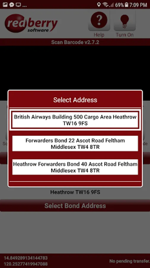 This App will download all Bond addresses for a selected Country and Port. Bond addresses are shared information and anyone registered to use Redberry Consign may add or update a Bond address through their allocated Web Space on the Redberry portal at www.redberryconsign.com.