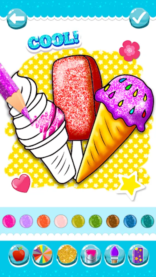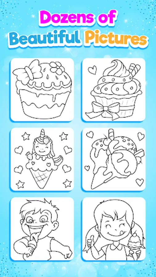 Beautifully designed Coloring game packed with more than 50 beautiful pages of Ice Cream.