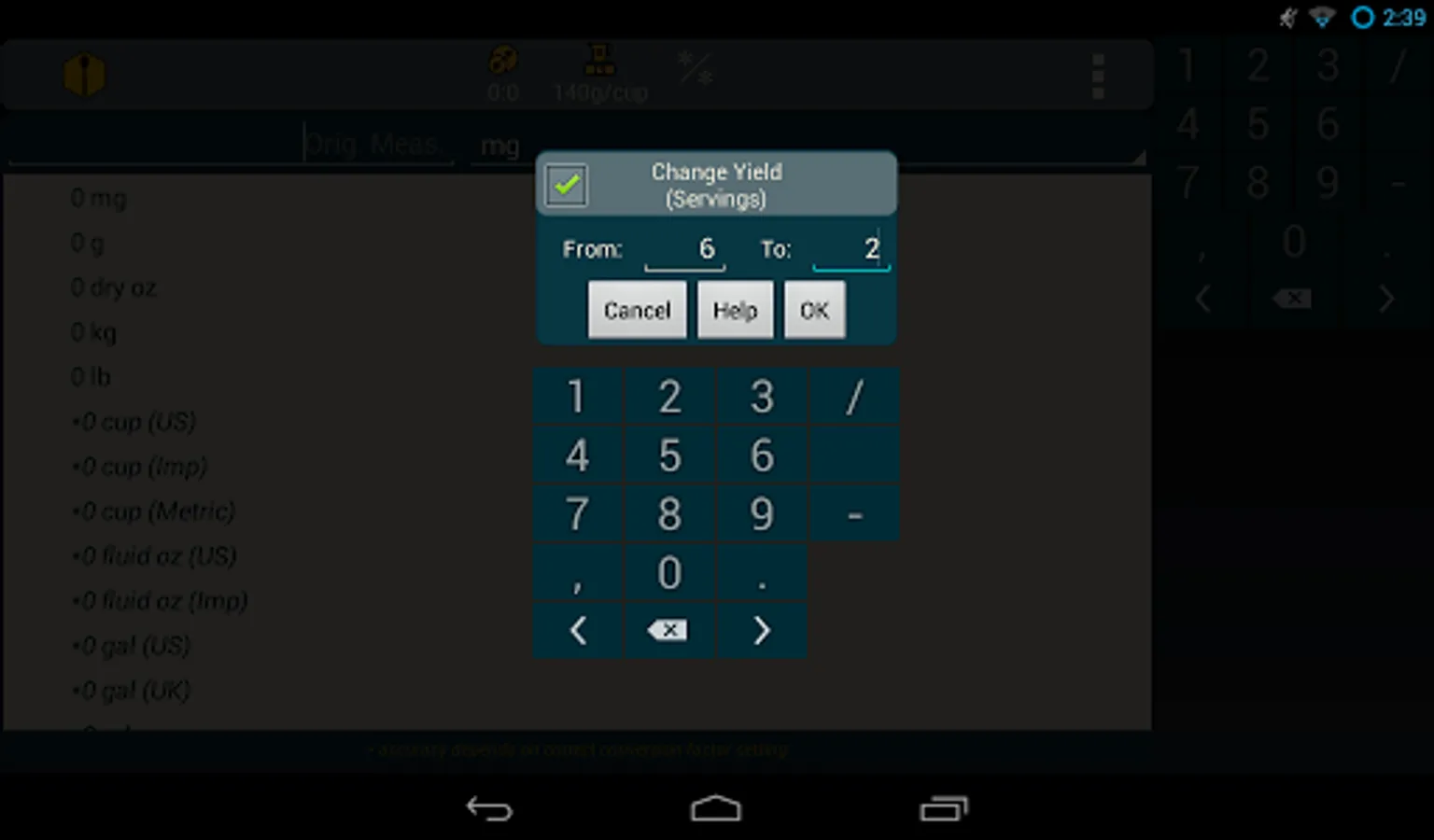 * Quick switch between converting units of measure to scaling yields (changing how many servings a recipe makes)