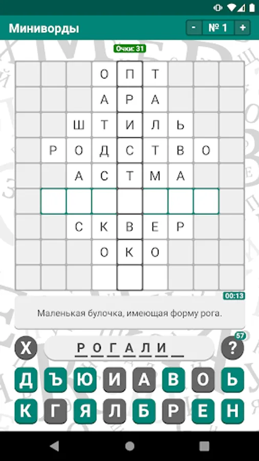 Thanks to thoughtful tips, you don’t have to rack your brains over the next word for a long time. Each word in the minivord can be guessed with the help of a hint, opening letters or simply putting the letters of the word in the correct order (here you will need the skills gained in the game Words from the Word). The game is great for playing with friends, as one head is good, and two is better!