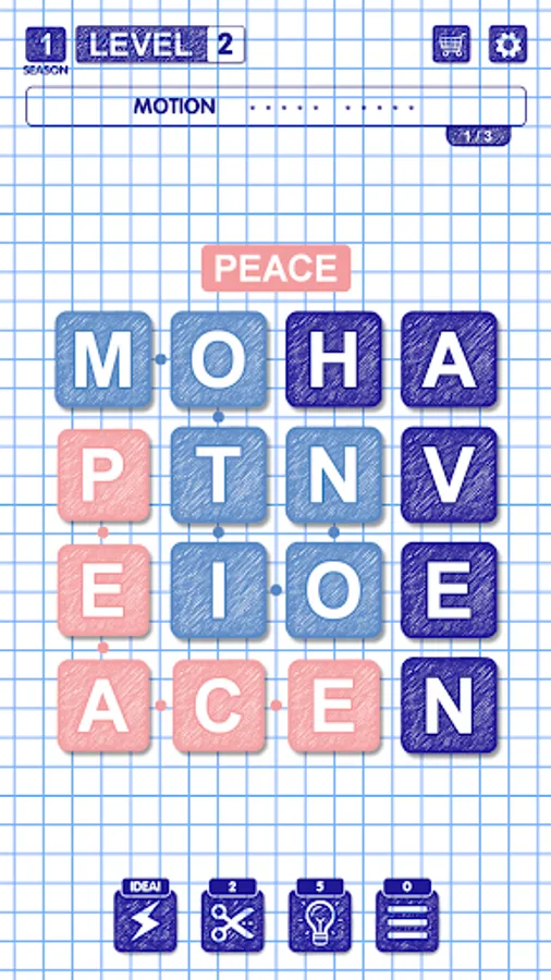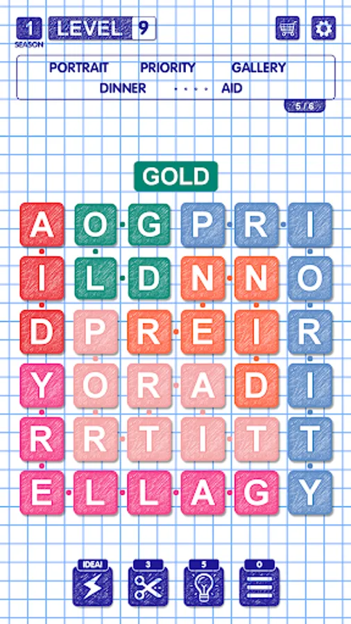 Each level of Feelwords is a square field filled with letters. It is necessary to find all the hidden words by connecting the adjacent letters. Words consisting of at least 3 letters are counted. For the words found, as well as for additional words that were not guessed at the level, the player is given various hints. They can be used to simplify the task of finding words.