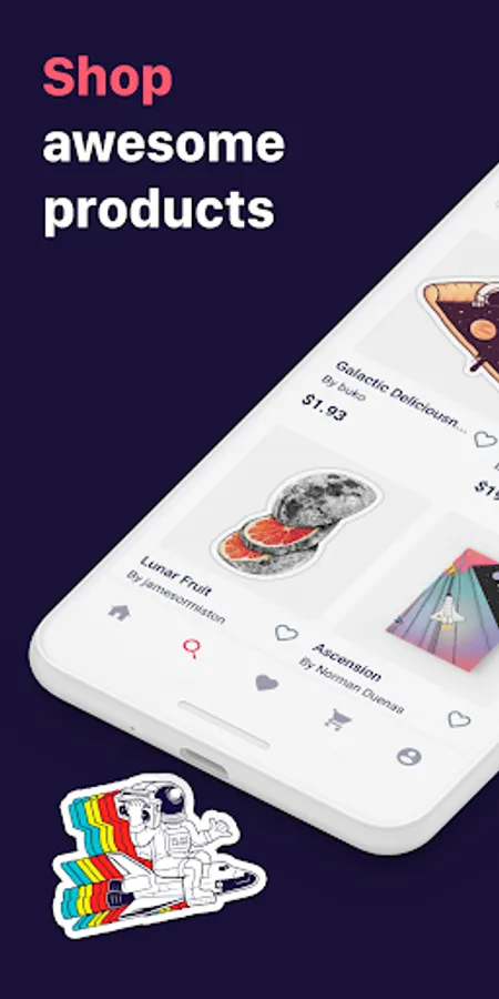 Redbubble begins with over 700,000 independent artists. A global community making everyday products weirdly meaningful. A shirt with an evil cat. A phone case with a galloping donut. A sticker of a star-surfing astronaut. Whatever your thing, Redbubble has uncommon designs that smack you right in the heart.