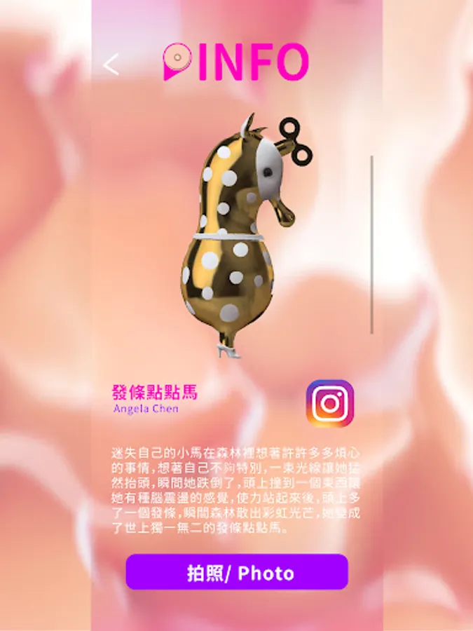 Use a new experience and discovery to collect various works of artist Angela Chen, an exhibition in the city. A new way of augmenting reality art works. Open it at the designated location and adjust the angle to take stunning photos and share them with family and friends.