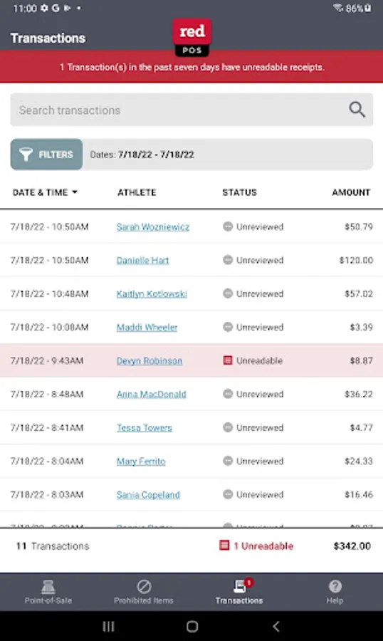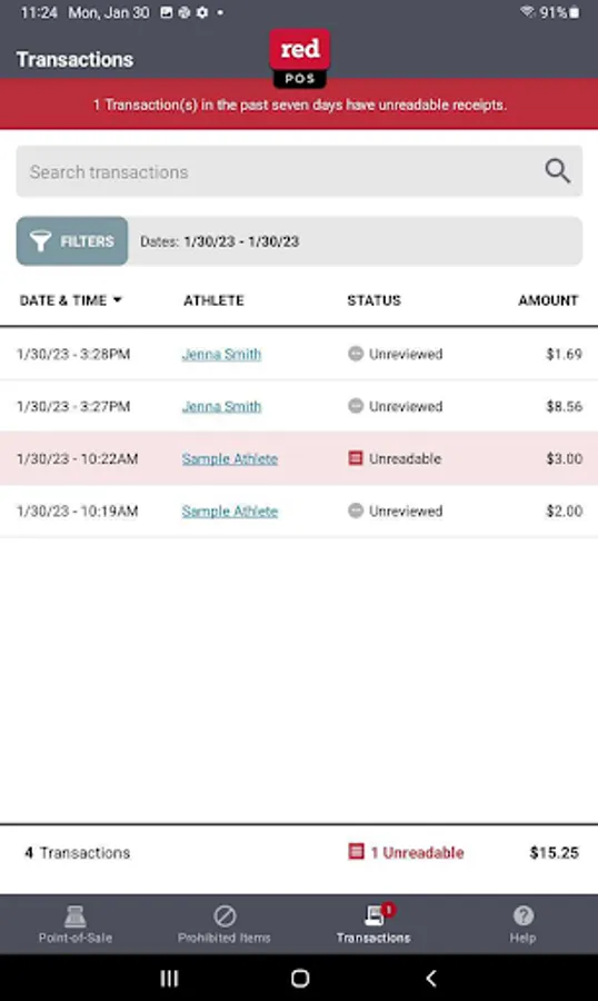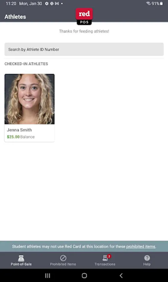 - Process Red Card Athletics transactions on a tablet