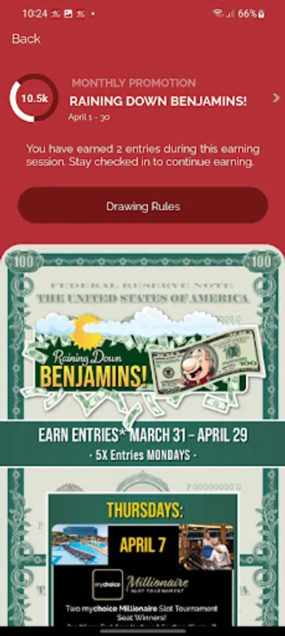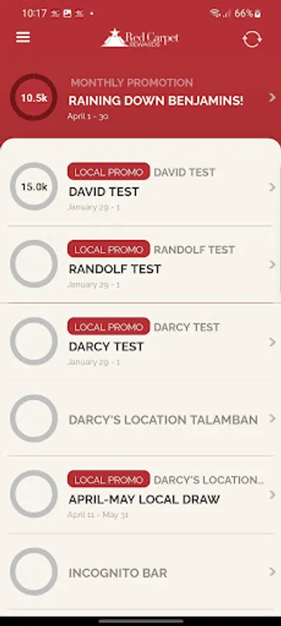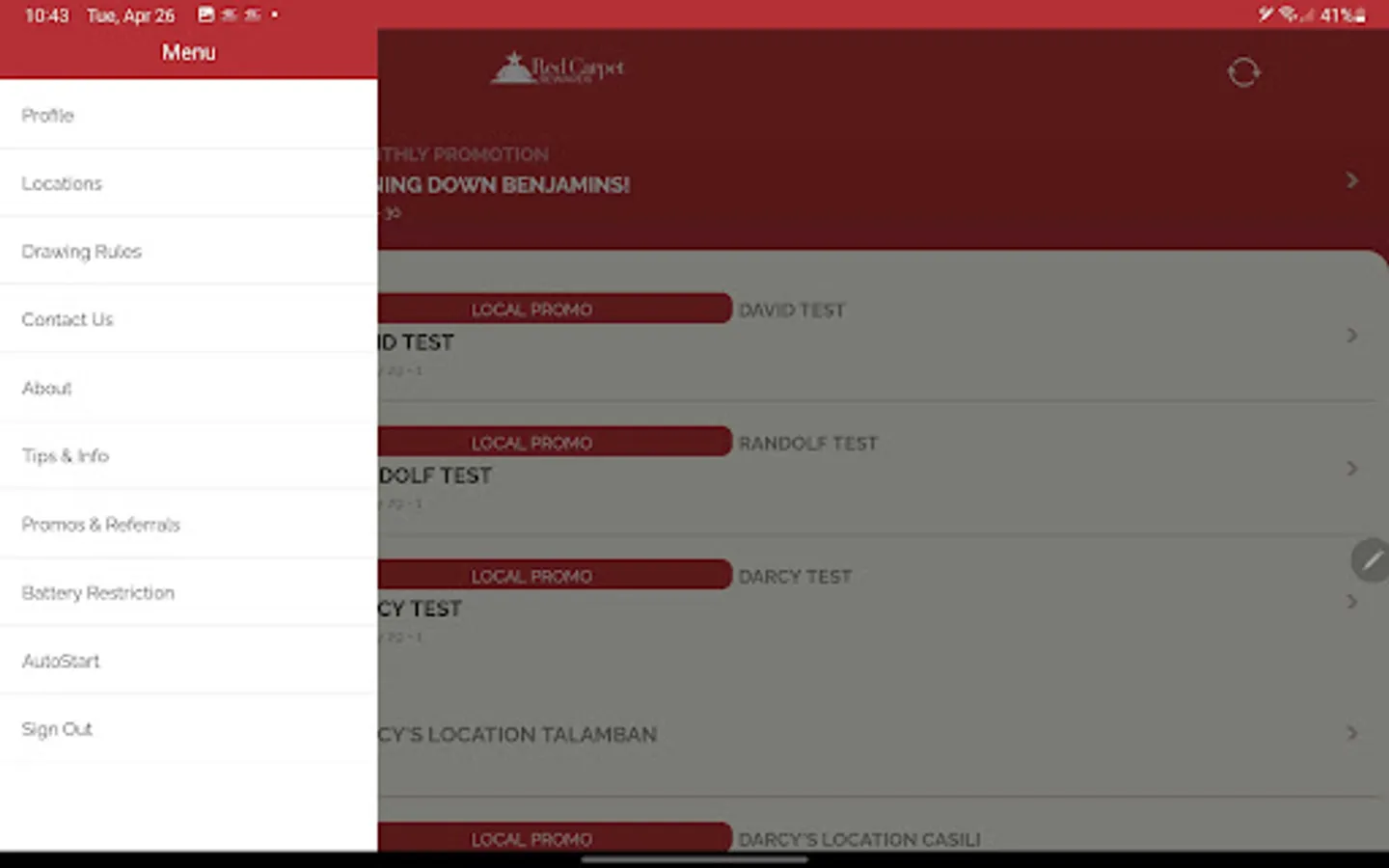The Red Carpet Rewards mobile application allows customers to enroll and participate in the Red Carpet Rewards loyalty club. Red Carpet Rewards is a loyalty club intended for customers of specific VGT (video gaming terminal) locations in Illinois. With location services turned on, members carrying their devices into participating locations can auto check-in and check-out of locations. Customers can participate in certain virtual drawings and other promotions that may be available to them. Red Carpet Rewards is operated by Prairie State Gaming, a Video Gaming Terminal Operator that operates in the state of Illinois. Prairie State Gaming is a Penn National Gaming company.