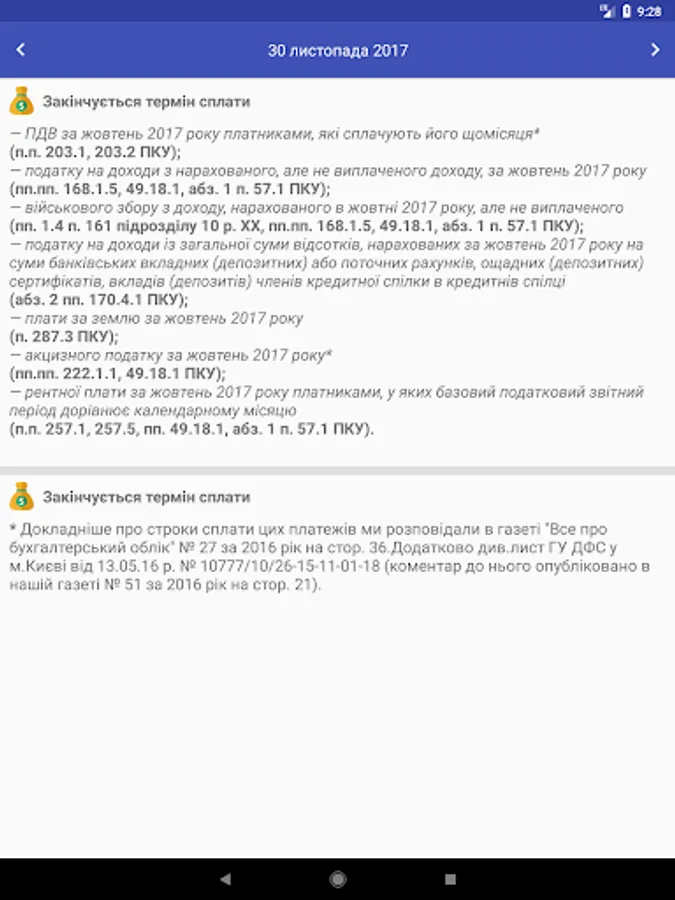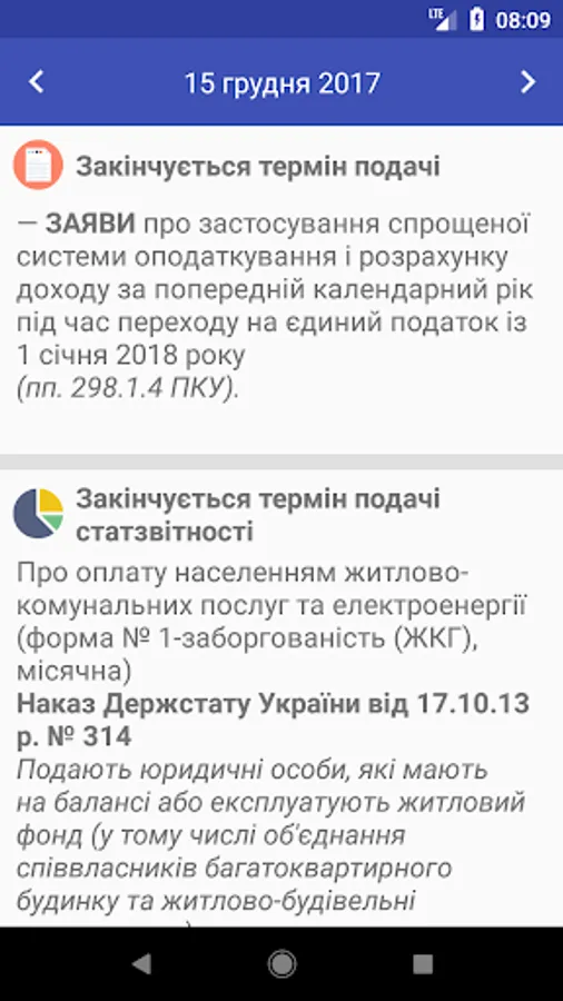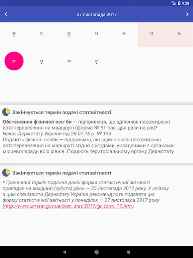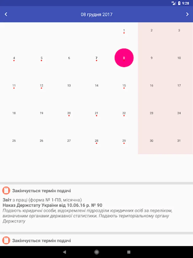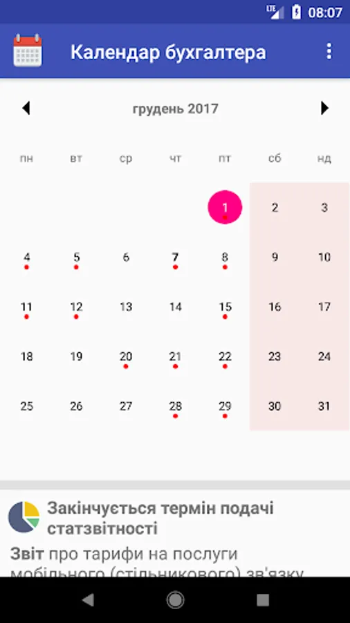 Accounting Calendar is your electronic assistant that will remind you of the terms of delivery and reporting will keep vkurse events every day!