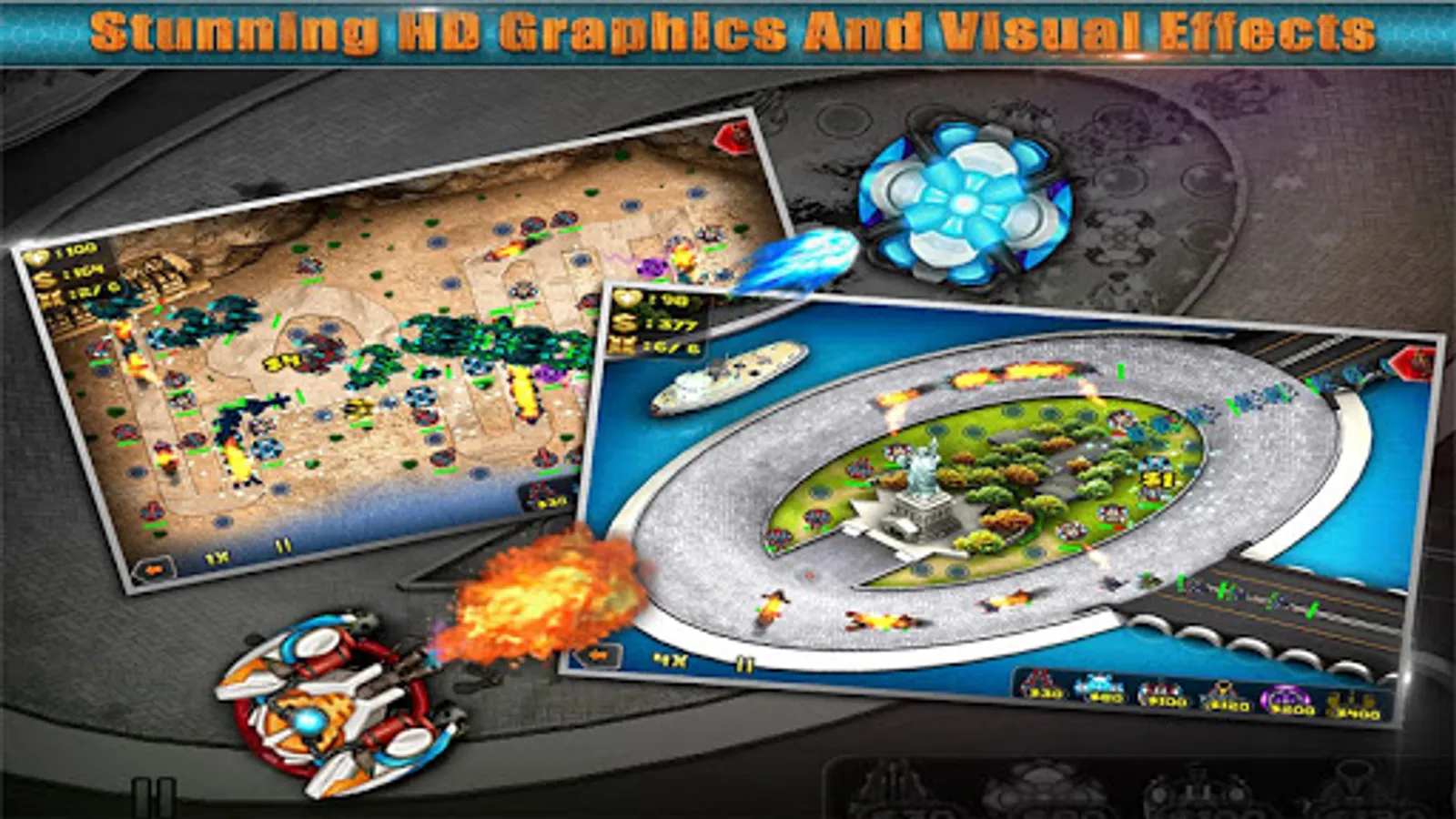 In Aliens Attack - Monuments Defense game Aliens are at the verge of robbing us our heritage and the heroic war to defend our priceless monuments is on. As our last line of defence, your mission is to defend the towers against all hordes of alien invasion.