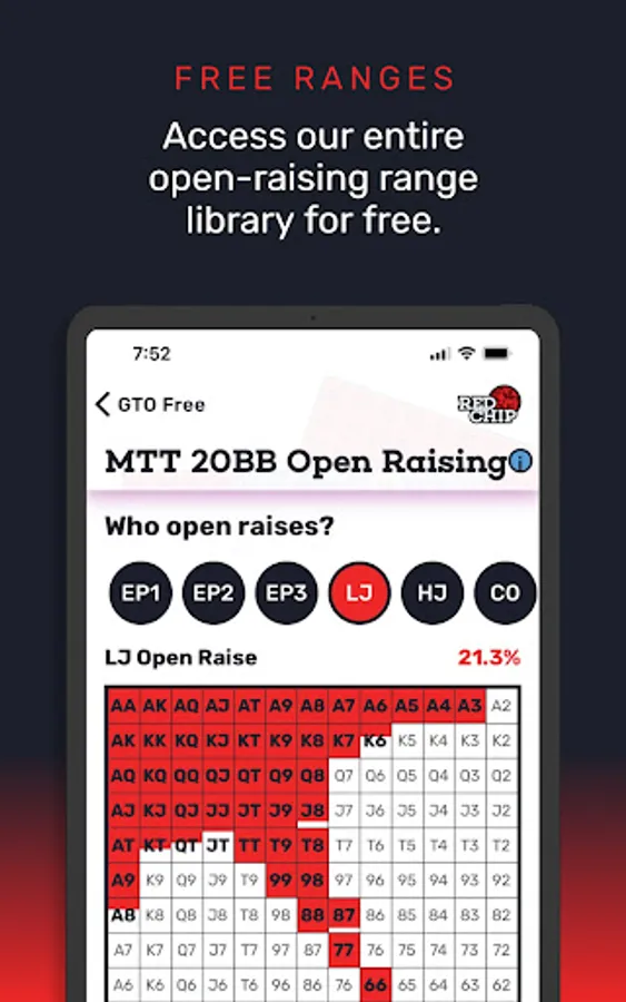 “Having my preflop ranges just a tap away at any time is HUGE. I flick through the app’s opening, 3-bet, and 4-bet ranges before every session to quickly refresh my baseline preflop strategy.”
