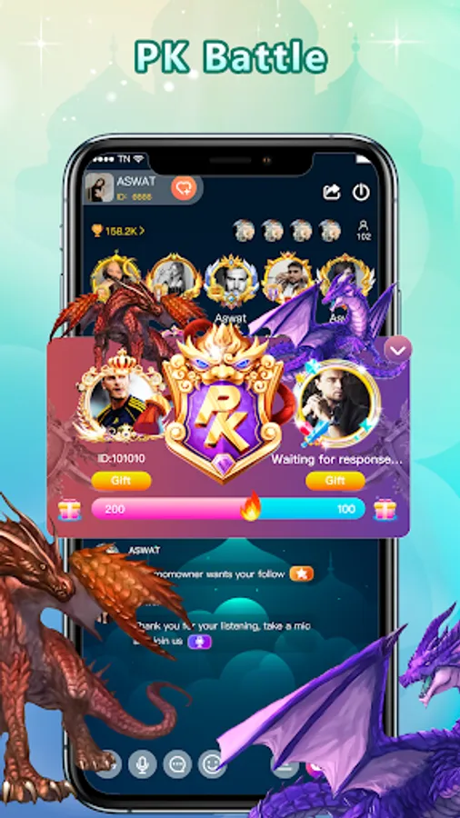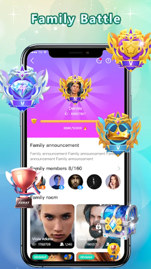 In a team chat, you can have voice conversations with your friends and groups without showing your face. Talk about what you care about - music, travel, food, sports, games. And so on. You can also play your favorite music in your room, sing karaoke or play interesting games.