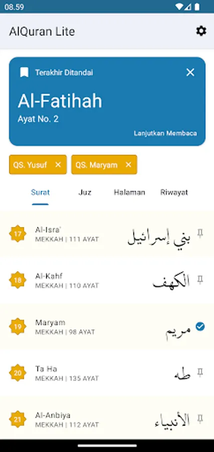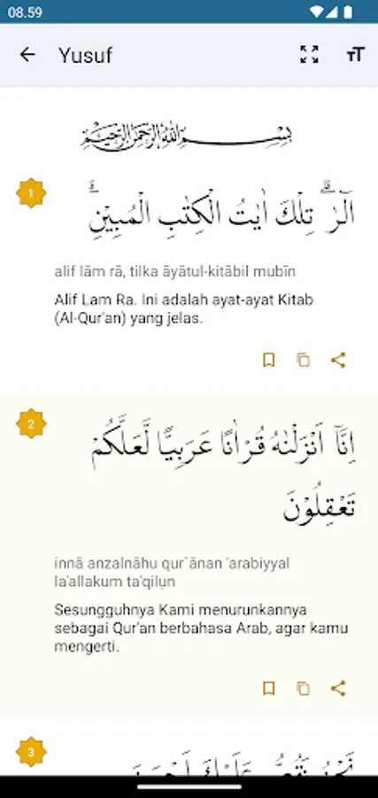 The Indonesian AlQuran application was created to make it easier for users in Indonesia to be able to read the AlQuran anywhere and anytime. This digital AlQuran application has been equipped with transliteration (writing of the Qur'an in Indonesian) and an Indonesian translation sourced from the Ministry of Religion (KEMENAG) of the Republic of Indonesia. The Indonesian AlQuran application is complete with 114 chapters or 30 juz. This Indonesian AlQuran application can be used to improve the quality of worship and tadarus in the month of Ramadan 2020