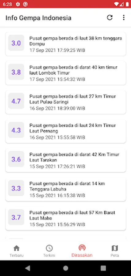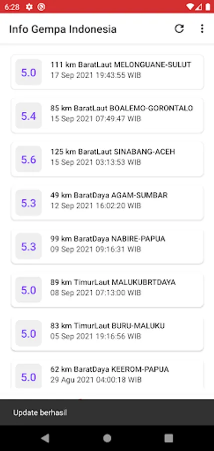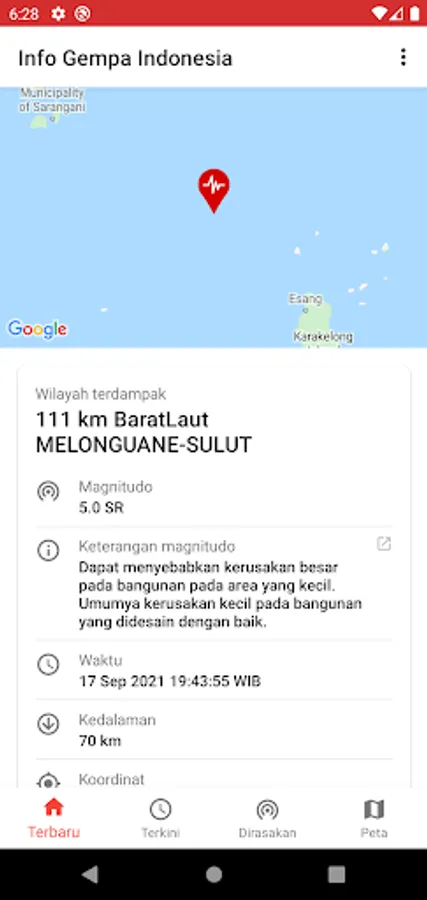 The Indonesia Earthquake Info application was created to make it easier for users to monitor the latest earthquakes that occurred in Indonesia. This earthquake info application is sourced from Indonesian BMKG data.