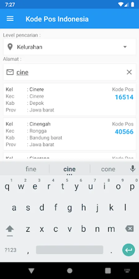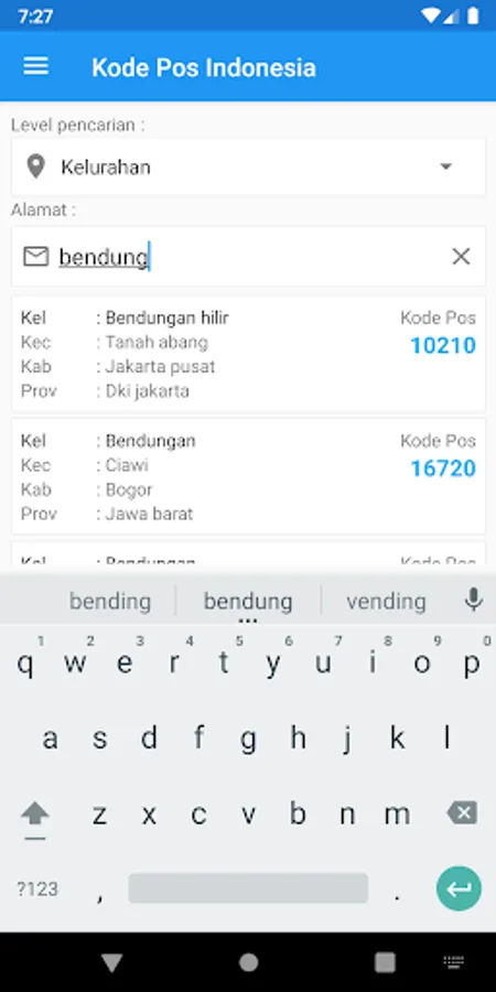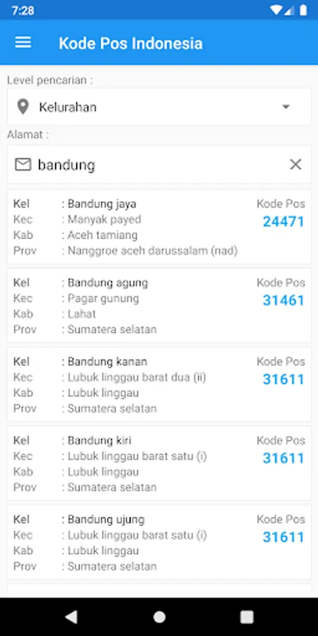 Postal Indonesia seeking a quick way zip code, does not require an Internet connection can search the alias offline for zip code.