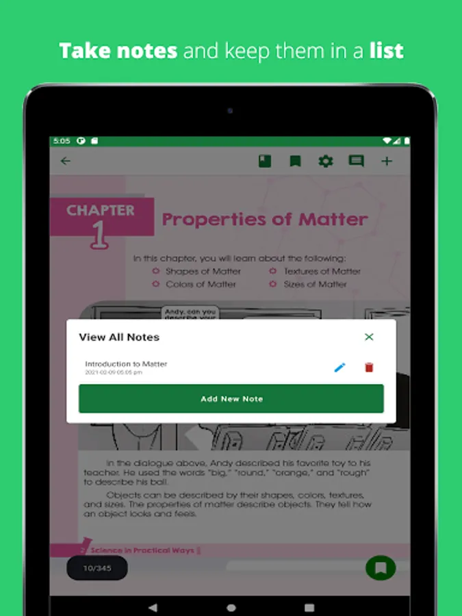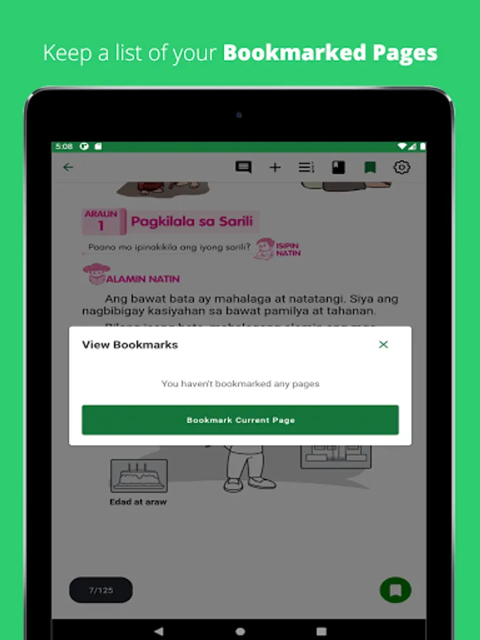 - Track your reading progress and see what page of the book you’ve read through page numbers