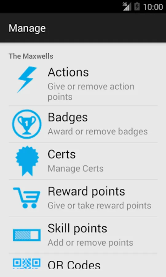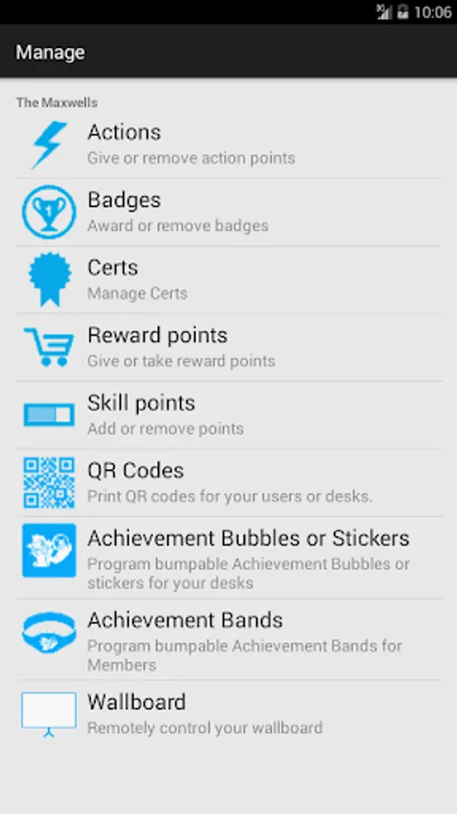 Create and scan QR codes or bump with RedCritter Achievement Bands, Bubbles or Stickers to give your family members digital badges, certificates, skill points, virtual currency and more!