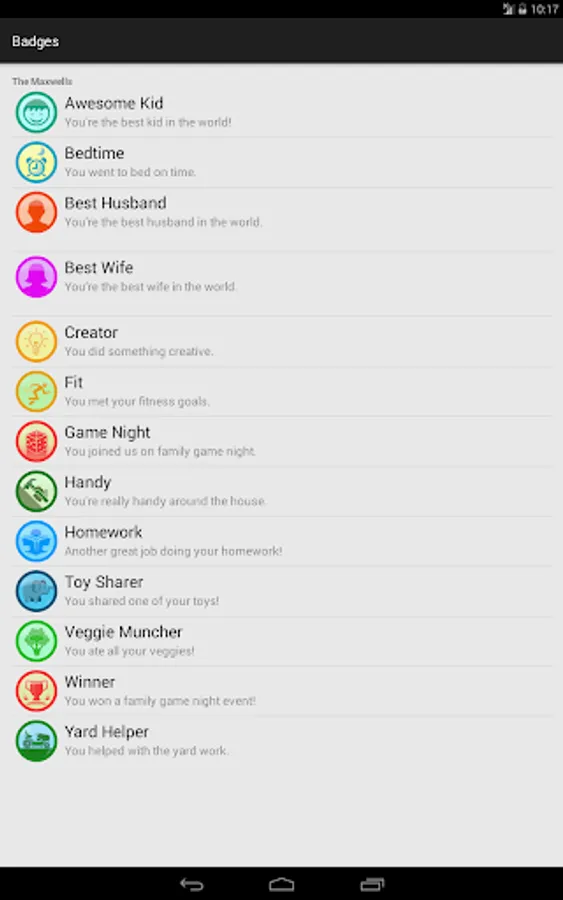 Use your Android Phone or Tablet to recognize and reward family member achievements. Design your own badges, give out virtual currency for your allowance rewards store and more. Give access to the babysitter and grandparents.