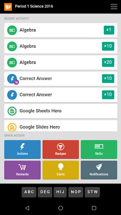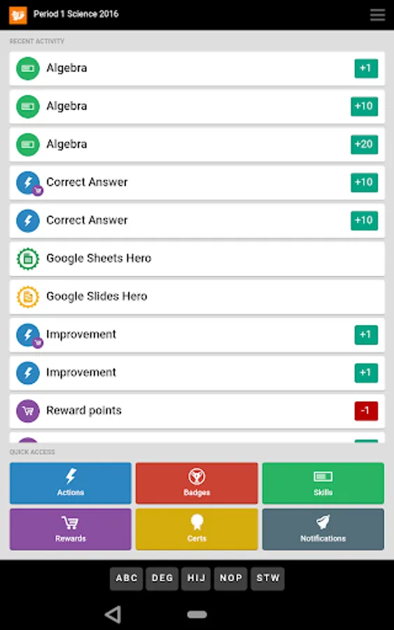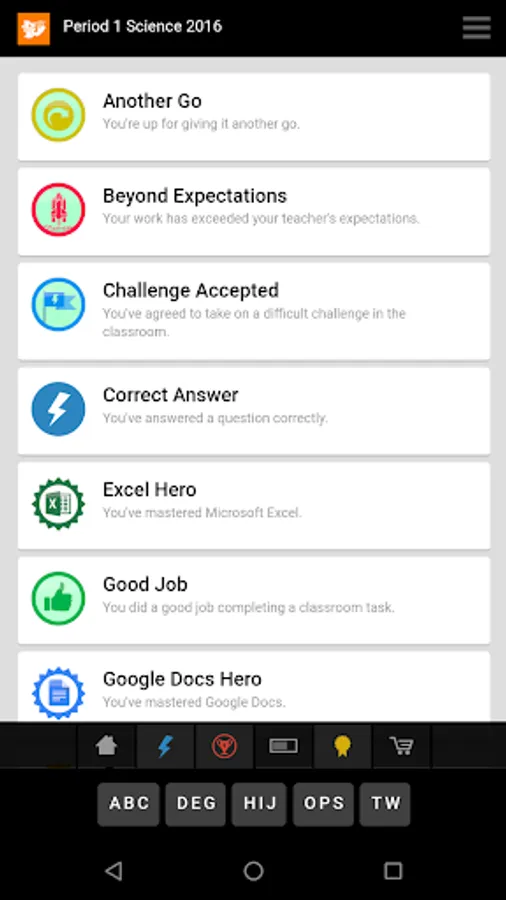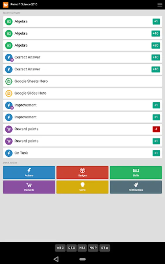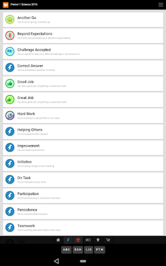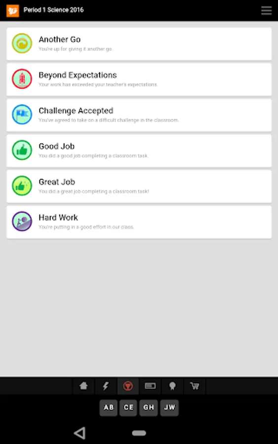 RedCritter Teacher includes Rapid Keyboard(TM) - find achievements and students in one or two taps.