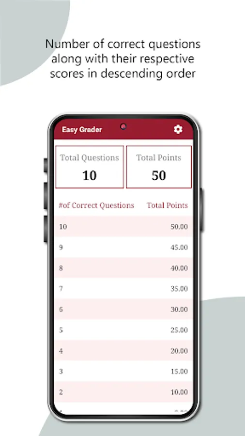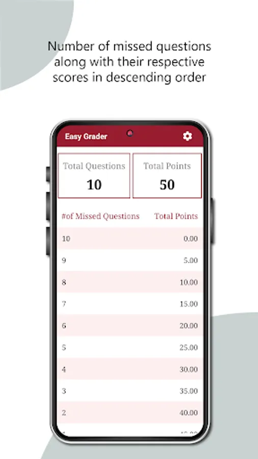 Welcome to the best grading app for teachers and professors! With our grade tracker for educators, you can easily grade papers and tests with just a few taps on your smartphone. Simply choose the number of questions on the test and the total points available, and our app will generate a clear and easy-to-read grade chart for you to use.
